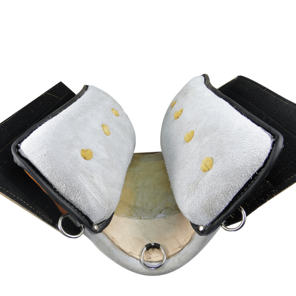 Suador parte externa em raspa (couro), parte interna em carpete com enchimento de estopa e casca de arroz.